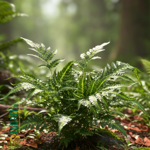 Arachniodes aristata ‘Variegata’ is a handsome fern valued for its thick, glossy fronds marked with pale stripes. Evergreen and clump forming, it offers structure and colour throughout the year. Medium in size, it is perfectly suited to shaded borders or beneath shrubs. A dependable foliage plant for Irish gardeners who appreciate subtle variegation.