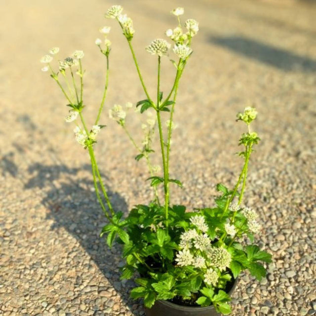 Astrantia major ‘Star of Billion’ is a clump-forming perennial with mid-green foliage and umbels of tiny greenish-white to white flowers, framed by strap-shaped bracts tinged with green. Flowering from June to August, it grows to a medium size and suits borders or naturalistic plantings. Loved by pollinators and excellent for cutting, it provides steady summer interest. A reliable perennial for Irish cottage and wildlife gardens.