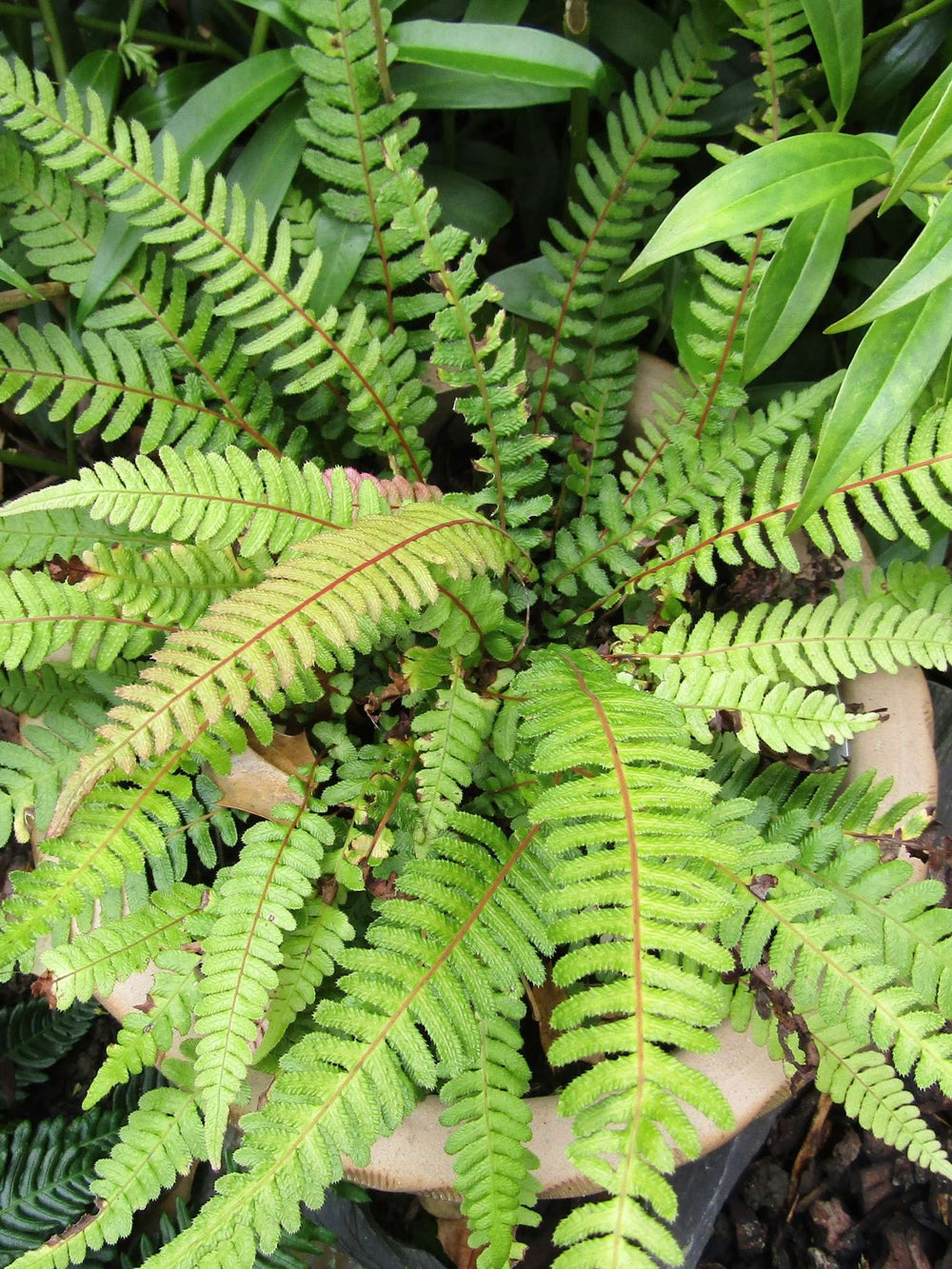 The Common Rasp-Fern, Doodia media, or Blechnum medium, is an evergreen fern forming low tufts of leathery green fronds. Bronze tones often tint the new growth, giving year-round interest. Small in scale and reliable in partial shade, it is suited to sheltered corners, containers, or shaded beds in Irish gardens.