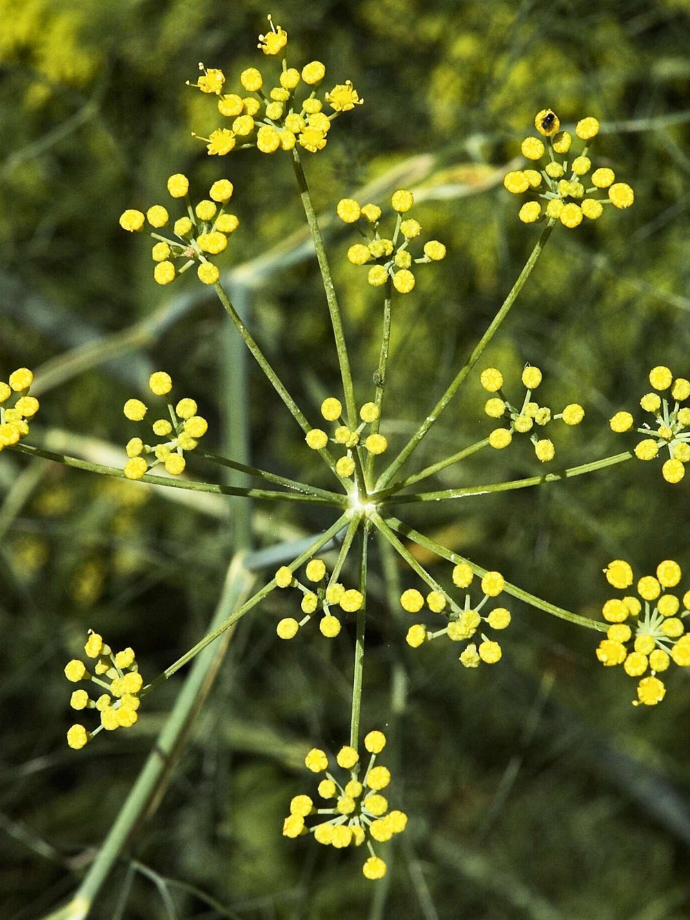 Common fennel, Foeniculum vulgare, is a tall, aromatic perennial with feathery green leaves and a strong aniseed scent. In summer it produces umbels of small yellow flowers, followed by seed heads that can be cut for drying. With its upright, clump-forming habit and fragrant foliage, it adds height and texture to borders in Irish gardens. It is also loved by pollinators and useful for cut flowers.