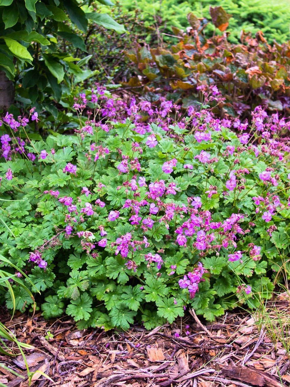 Geranium × cantabrigiense ‘Karmina’, also called cranesbill ‘Karmina’, produces lilac-pink flowers from dark buds in early summer. Its rounded aromatic leaves take on warm red tints in winter, adding seasonal foliage colour. Small and mat-forming, it thrives in borders, gravel gardens, or banks. With fragrance, pollinator value, and low-maintenance needs, it suits many Irish planting schemes.