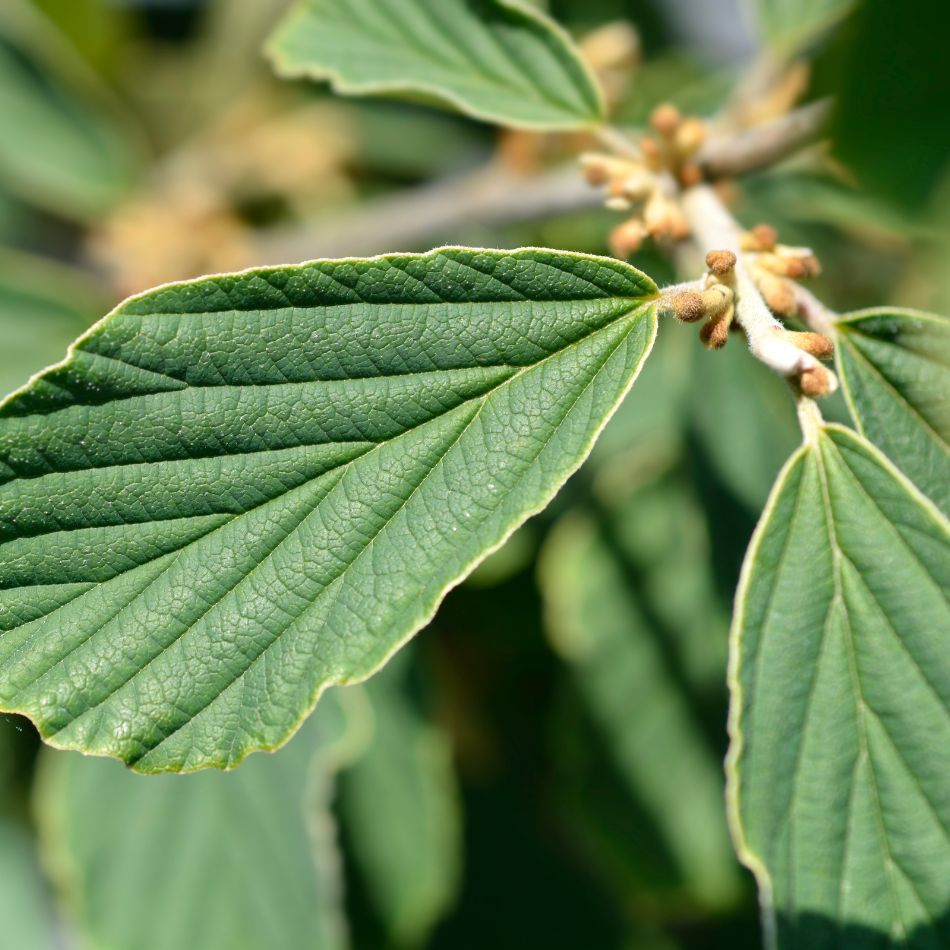 Hamamelis × intermedia ‘Arnold Promise’, or witch hazel ‘Arnold Promise’, is an open shrub with bright yellow fragrant flowers in late winter. Its ovate leaves turn red and yellow in autumn, extending the seasonal display. Medium to large and bushy, it thrives in borders, woodland planting, or as a specimen shrub. Holder of the RHS Award of Garden Merit, fragrant and low-maintenance, it is highly reliable.